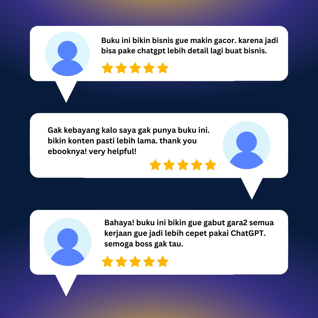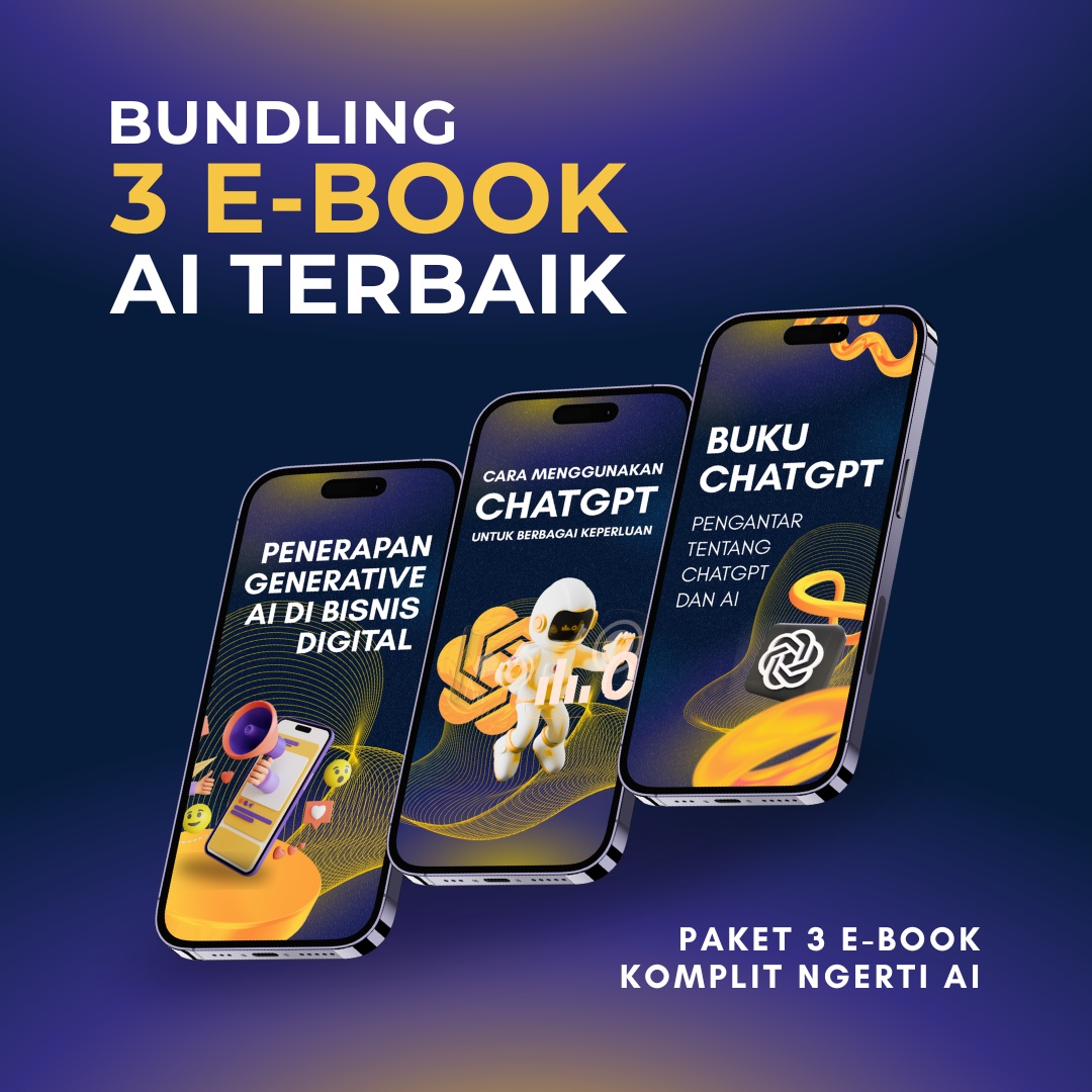 Bundling E-Book AI Terbaik ini berisi E-book yang bakal bikin kamu jago AI, menguasai ChatGPT, dan ngerti gimana caranya pake AI di bisnis digital.